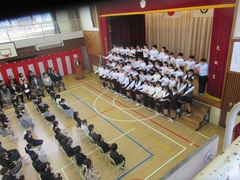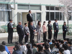 まず、始業式は校庭で行われ、新しく赴任された先生や職員の方の紹介がありました。