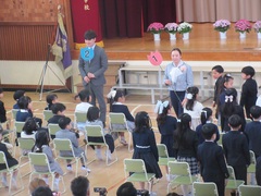 次に、担任の先生の発表が行われ、みんな「わー!」「きゃー!」と盛り上がっていました。