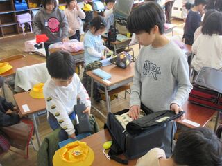 他にも、体育袋を廊下のフックに掛けたり、給食当番袋をロッカーに入れたり。