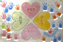 大切にしたい「やるき・げんき・れいぎ・きづき」の心を込めて、手形を押して完成です。