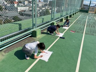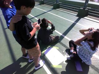 午前と午後に屋上で観察・記録を行い、かげと太陽の位置を一生懸命記録する様子が見られました。