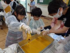 大田生活実習所の職員や利用者の方々にベンガラ染めの極意を教えていただいたことで、こどもたちも慣れないことでも楽しく取り組むことができました。