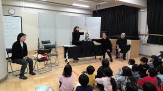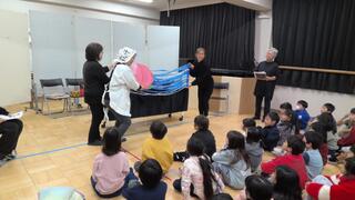 担任が欲しいクリスマスプレゼントについてクイズ形式でお話をしたり、太鼓や笛などの小道具を使って劇風にお話をしていただいたりました。とても創意工夫されたお話ばかりで、こどもたちも、夢中になってお話を聞いていました。