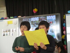 2月4日(水曜)の音楽朝会では、1年生が発表しました。