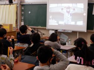 3校時 1.2年生は各教室でオンライン、6年生は体育館