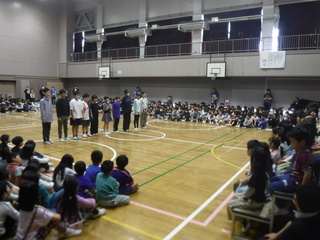 校歌の出し物では、1年生が1番を元気よく歌い、2,3番は全校児童で一緒に歌いました。