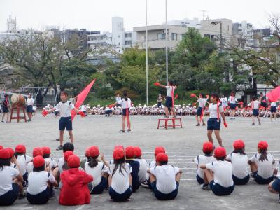 本日の練習では、まず、整列の仕方や礼の仕方など、基本的なことを確認しました。次に、準備運動、整理運動の練習、応援練習を行いました。