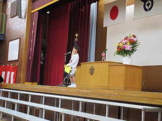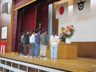 3月25日に修了式が行われました。校長からは、1年間の振り返りと、次の学年に向けての話がありました。児童代表の言葉では、1年生の代表児童が1年間の振り返りと2年生で頑張りたいことを堂々と発表しました。各学年の代表児童が、校長から修了証を受け取りました。