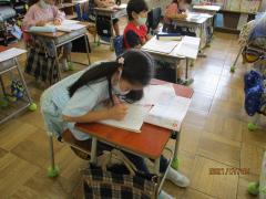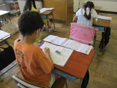 2年生で学習する漢字の数は、160字。1年生の時の2倍です。ドリルを見ながら、漢字ノートに、1文字1文字ていねいに書いていました。この後、小テストをするそうです。がんばろう!!