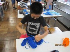 6年生は、家庭科で、掃除の仕方や工夫について学習してきました。今日は、毛糸を使って、アクリルたわしを作りました。全て、指編みです。ぜひ、家で、食器を洗うのに使ってくださいね!