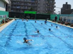 プール開き以来、天候不順でプールに入れていなかった3年生ですが、今日は無事、入ることができました。