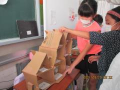 3年生は、社会で、スーパーについて学習してきました。1学期に、近所のスーパーの店長さんから教えてもらったことや、普段、お家の人とスーパーに行って気付いたことを思い出し、スーパーで働く人たちの努力や工夫を考え、それをお店づくりに生かそうと、みんなで話し合って決めました。