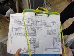 校内にある消防設備について調べました。万が一、火災が起きた時のために、消火器、消火栓、防火シャッター、防災無線機など、たくさんの設備があることがわかりました。子供たちは、タブレットを活用して撮影したり、校内図にメモを書き込んだりしていました。