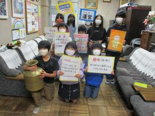 地球上には、様々な問題(争い、貧困、環境破壊、人口増加、経済、保健など)があります。今日の集会では、これらのことについて、日本ユニセフ協会からお借りした、水がめ、地雷の模型、蚊帳を使って、運営委員の人たちが分かりやすく説明してくれました。また、100円の募金で、できることも紹介してくれました。