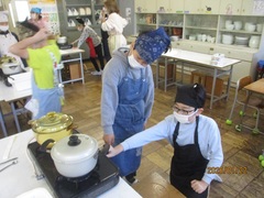 いよいよお米と味噌汁の具材を火にかけます。上手に火加減を調節できました。