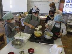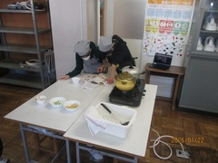 材料を包丁で切っています。慎重に、ていねいに取り組みました。