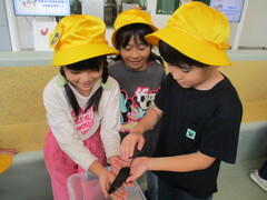 動物園では、モルモットやハツカネズミとのふれあい体験もしました。ハツカネズミは落とさないように、そーっと優しく持っていました。「モルモットは前足と後ろ足で指の数か違うんだ!」「モルモットは1000gだったよ」などいろいろな発見がありました。