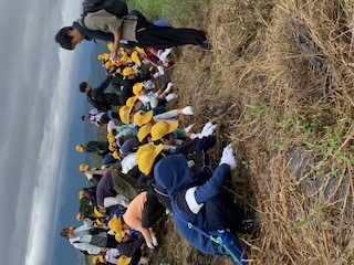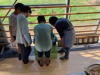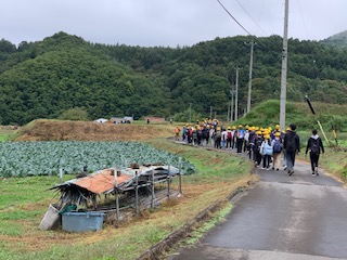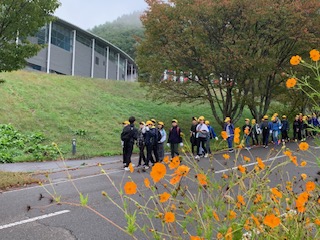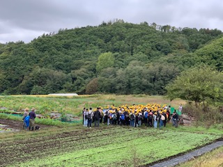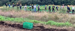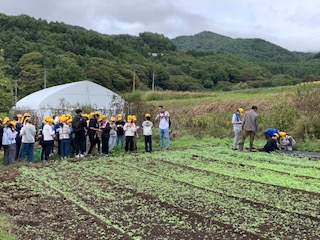 午前中は農業体験 雨も上がり、農場までは気持ちの良いハイキングです。
