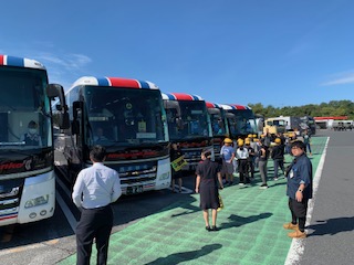バスに乗り込みました。 素早く行動して 予定より5分早く出発できました。