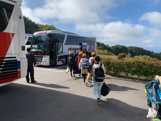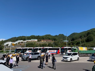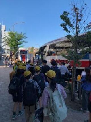 出発式 元気な声で行ってきますの挨拶をして、学校を出発 2泊3日の移動教室が始まります。