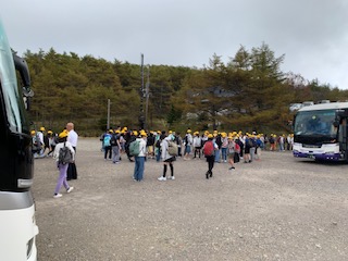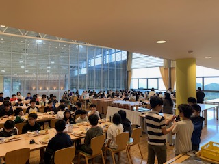 移動教室2日目の朝、学園は雲の中のようです。 起床の放送で子どもたちが起き出してきました。よく眠れたかな?