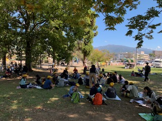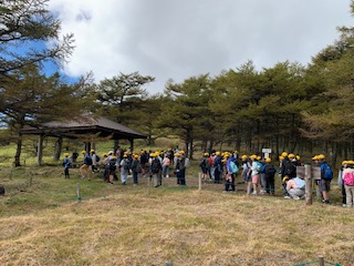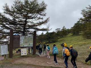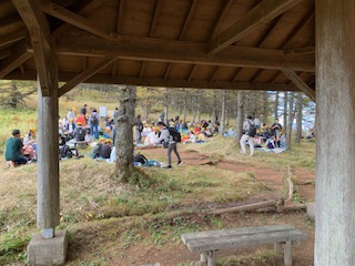 12時30分 予定より30分も早く池の平湿原に到着しました。 お楽しみのお弁当タイムです 。学校ではみんなも給食を食べている頃ですね。