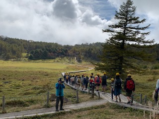 お昼を食べたら池の平湿原をハイキング 。雄大な自然に思わず歓声が上がります。