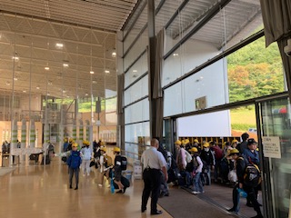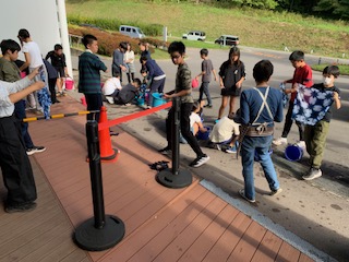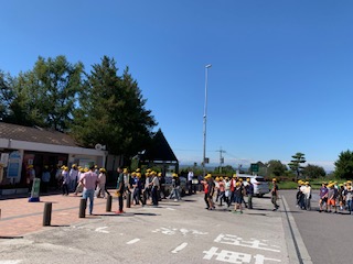 休養村とうぶに到着しました。山道で体調を悪くする子も出ず、みんな元気です。 開園式で施設の方のお話を伺って、いよいよ子どもたちの学園生活が始まります。