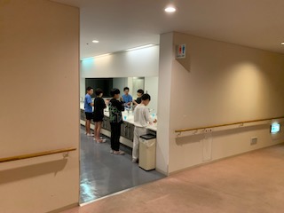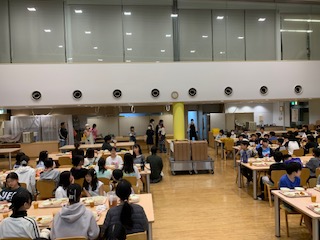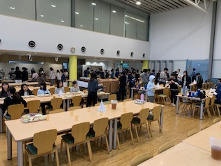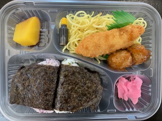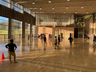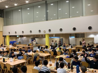 2日目の昼食はおにぎり弁当。 広い体育館でグループごとにいただきます。