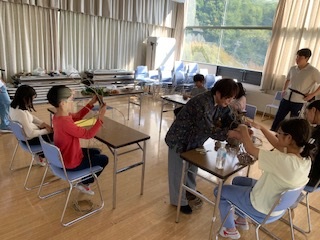 午後は体験活動。 地元の方に教わりながら、機織り、糸取り、竹紙すき、つる細工にくるみ工芸、藍染など、様々なものづくりを楽しみました。