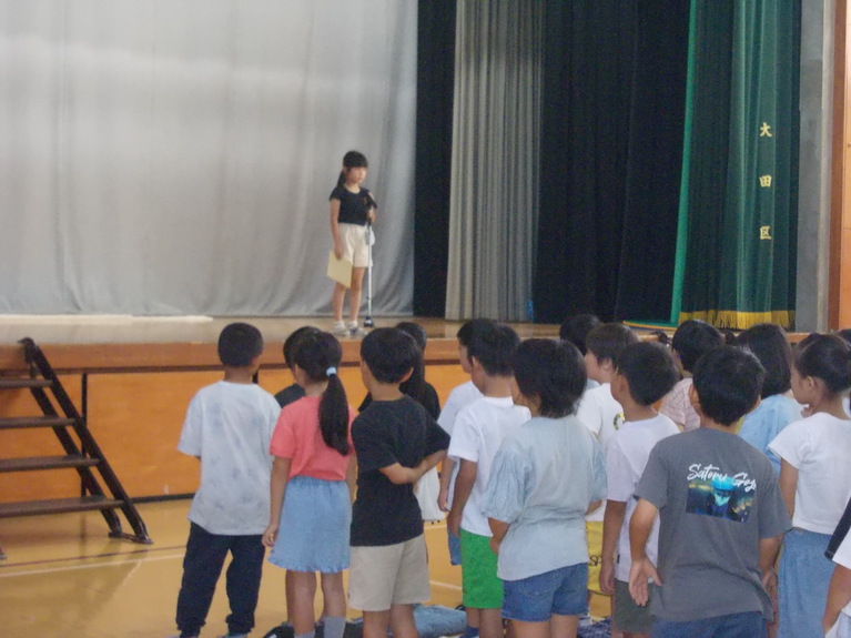 児童代表の言葉では、2年生が1学期に頑張ったことや思い出に残ったことを堂々と発表してくれました。