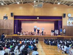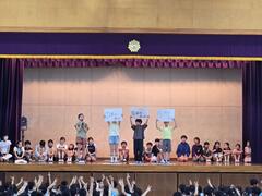 本日の児童集会は、飼育・栽培委員会による「うなぎの成長記録とツアー、スタンプラリーイベントのお知らせ」集会でした。