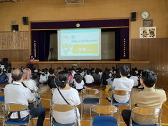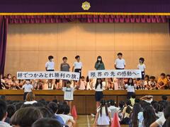 今年の運動会のスローガンが決定し、代表委員会による、全校児童への周知が行われました。