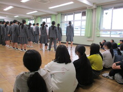 6年生を対象に、大森第十中学校の3年による「十字祭」のリハーサルの様子を参観させていただきました。