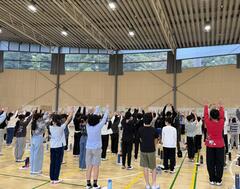 学校での出発式の後、もみじ平総合公園でお昼ごはんを食べました。富岡製糸場では、歴史に触れ、多くの学びを得ることができました。その後、長野県の休養村とうぶに到着しました。入浴や夕食では、時間を意識して協力しながら行動しました。キャンプファイヤーでは、レク係の考えたゲームを学年全体で楽しみ、学年歌で盛り上がりました。最高学年として、更に友情の絆が深まりました。