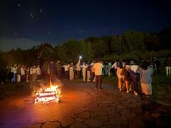 火を囲んでキャンプファイヤーを楽しみました。