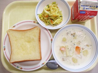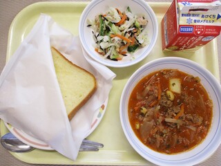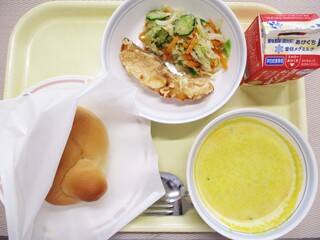 レモンシュガートースト・牛乳・豆乳入りいかクリームスープ・野菜のカレー風味