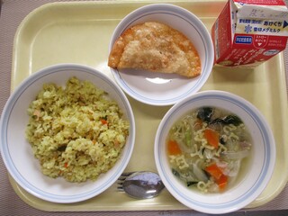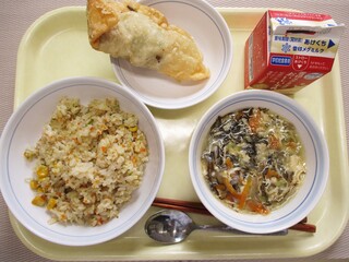 ツナピラフ・牛乳・豚肉とチーズの包み揚げ・ABCスープ