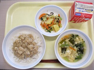 鯛めし・牛乳・じゃがいものそぼろ煮・ツナと野菜のごま酢和え