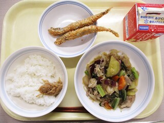ごはん・牛乳・魚の竜田揚げ・五目きんぴら・みそ汁