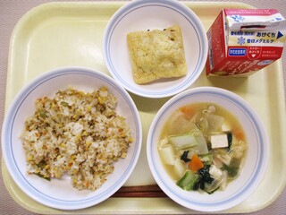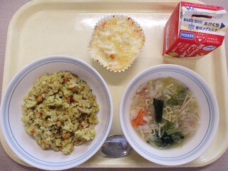 たこピラフ・牛乳・高野豆腐のミニグラタン・ABCスープ