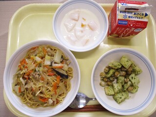 あんかけ焼きそば・牛乳・青のりビーンズポテト・フルーツのヨーグルト和え