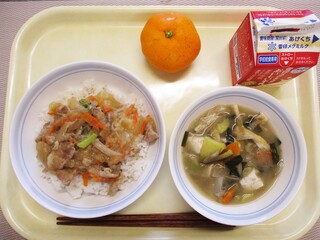 おろし豚丼・牛乳・さつま汁・くだもの(みかん)