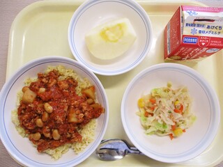 チリビーンズライス・牛乳・ツナと春雨のごまサラダ・くだもの(りんご)