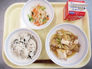 わかめごはん・牛乳・肉豆腐・野菜とツナのみそドレ和え