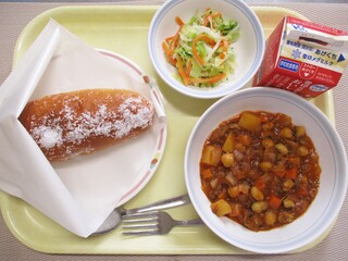 さとうあげパン・牛乳・二色豆のチリコンカーン・レモンマリネ