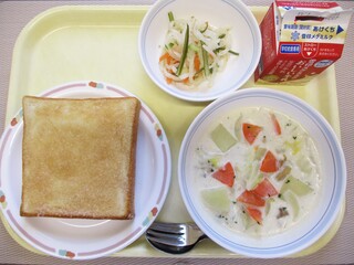 シナモントースト・牛乳・米粉のいかホワイトシチュー・大根サラダ