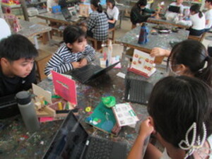 先生は作業の安全に配慮しつつ、使う素材や撮影の場所など、できるかぎり自由な発想で取り組めるように心がけていました。