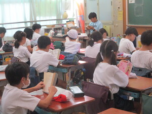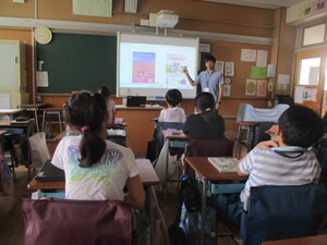 6校時に行われた4年1組の社会の授業です。指導教諭による模範授業として行うため、いろいろな学校から多くの先生たちが来校し、参観しました。