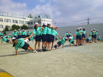 ダンシング玉入れは1回戦1組、2回戦2組、3回戦3組が勝利するという結果になりました。どのクラスも練習よりたくさんの玉を入れることができ、数えるのが大変でした。40m走では猛スピードで駆け抜けるかっこいい姿が見られました。はじめてのフラッグ、組体操では最高学年らしい素晴らしい演技を見せることができました。今まで担任してくださった先生方や前校長先生が見に来てくださり、子供たちは大喜びでした。中には泣いてしまっている子もいました。子供も教員も大満足で今年の運動会を終えることができました。